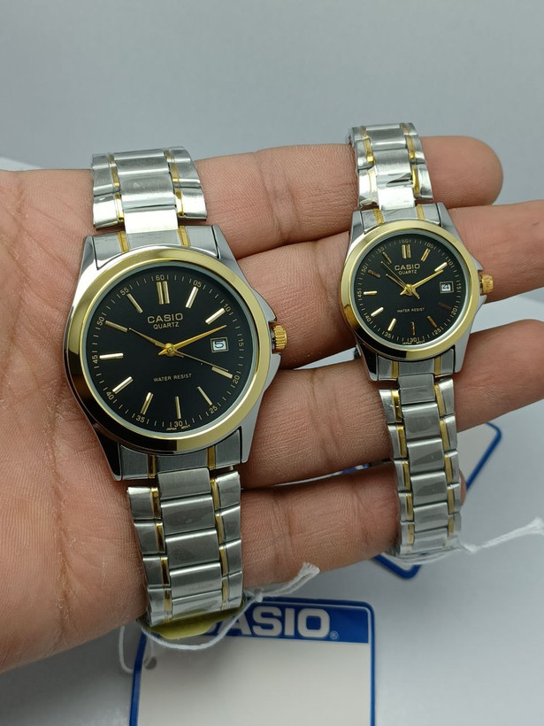 ست / زنانه / مردانه / ساعت کاسیو کلاسیک سیلور طلایی صفحه مشکی رفرنس ۱۳۳۲ mtp-1183| ساعت زنانه و مردانه
